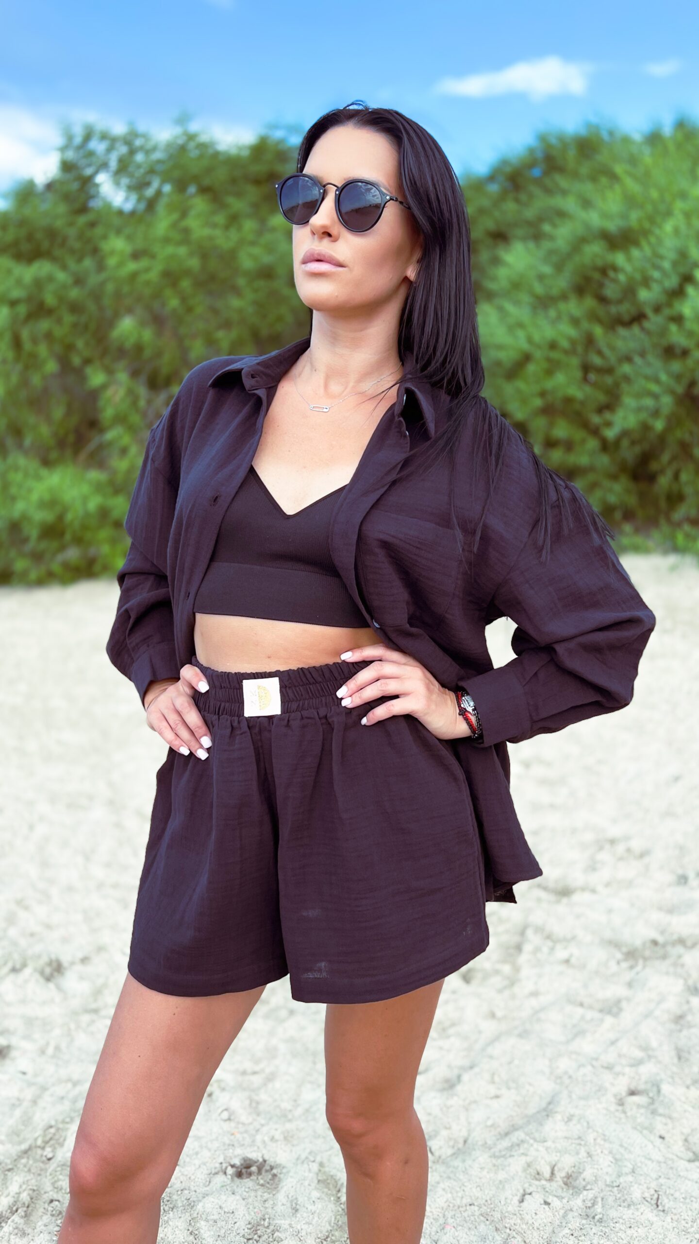 BLACK CAT XS 100% cotton muslin shorts set.