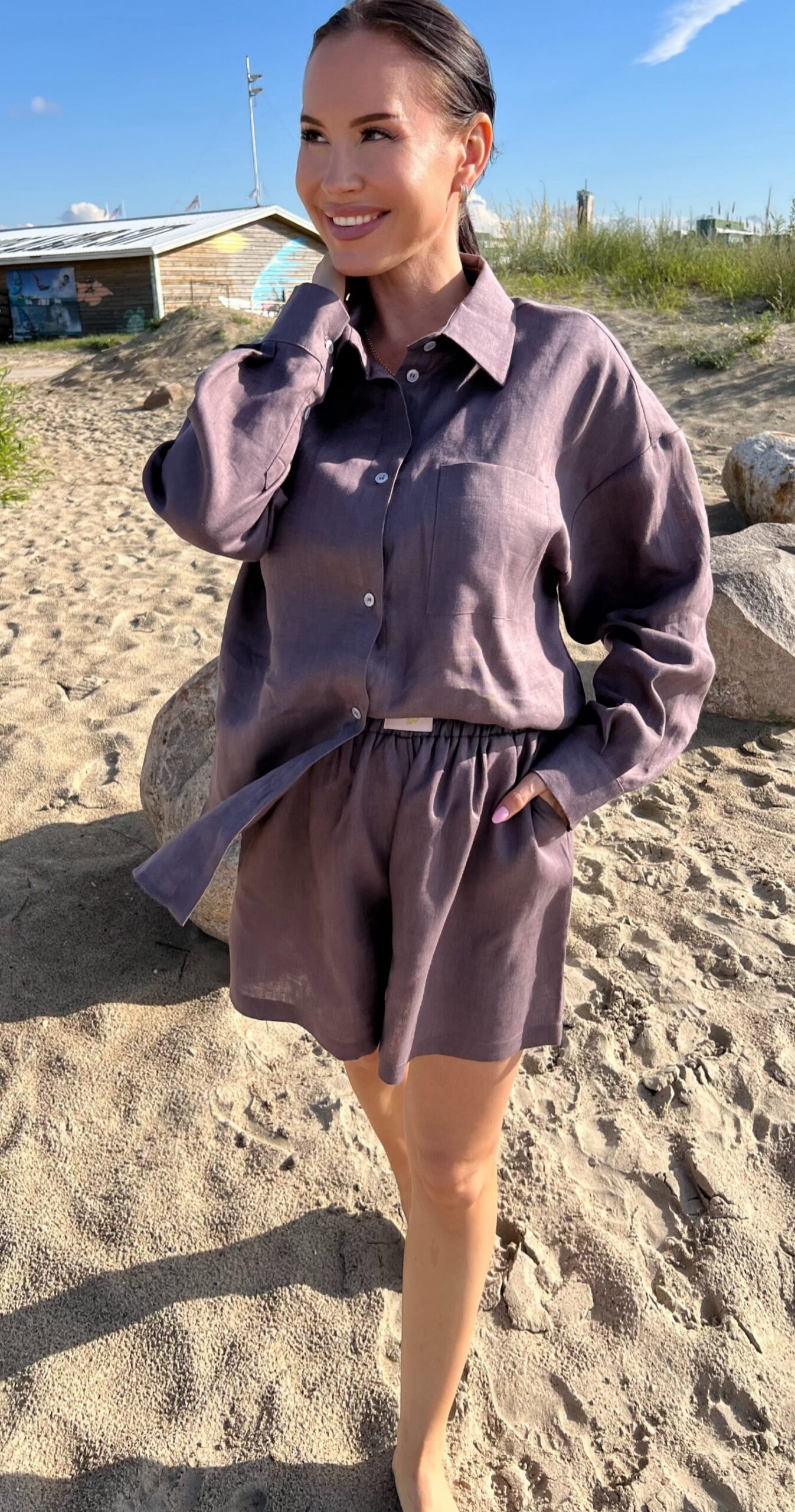 CHERRY CHOCOLATE shorts set is made from high-quality breathable linen fabric.