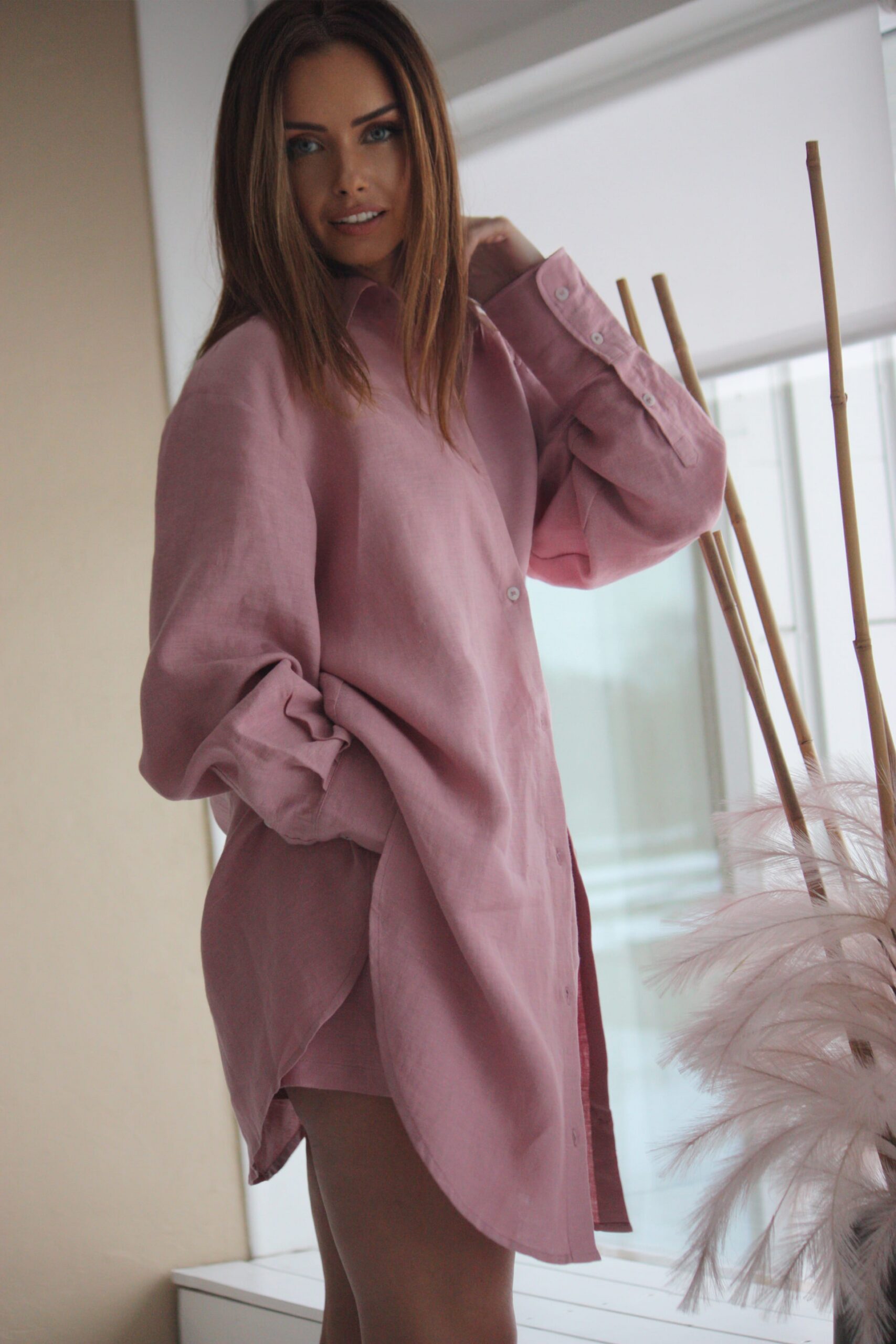 ROUGE POWDER elongated shirt is made from high-quality breathable linen fabric.